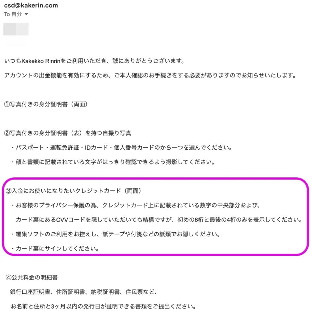 追加書類が必要な場合は、賭けリンから登録メールアドレス宛にメッセージが届くので指示に従って正しい画像を提出してください。
