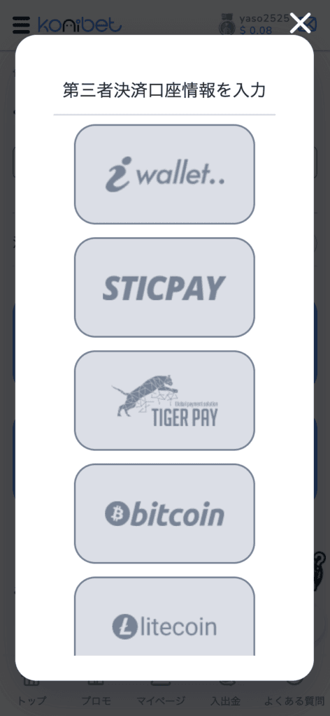 コニベットからアイウォレットに出金する方法